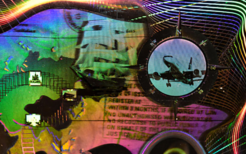 Shiny-looking security laminate made up of a plastic base (PET, PC, PVC, etc.) with variable thickness...