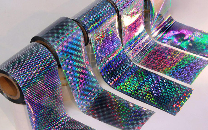 Thin shiny holographic film heat sealable or self-adhesive...